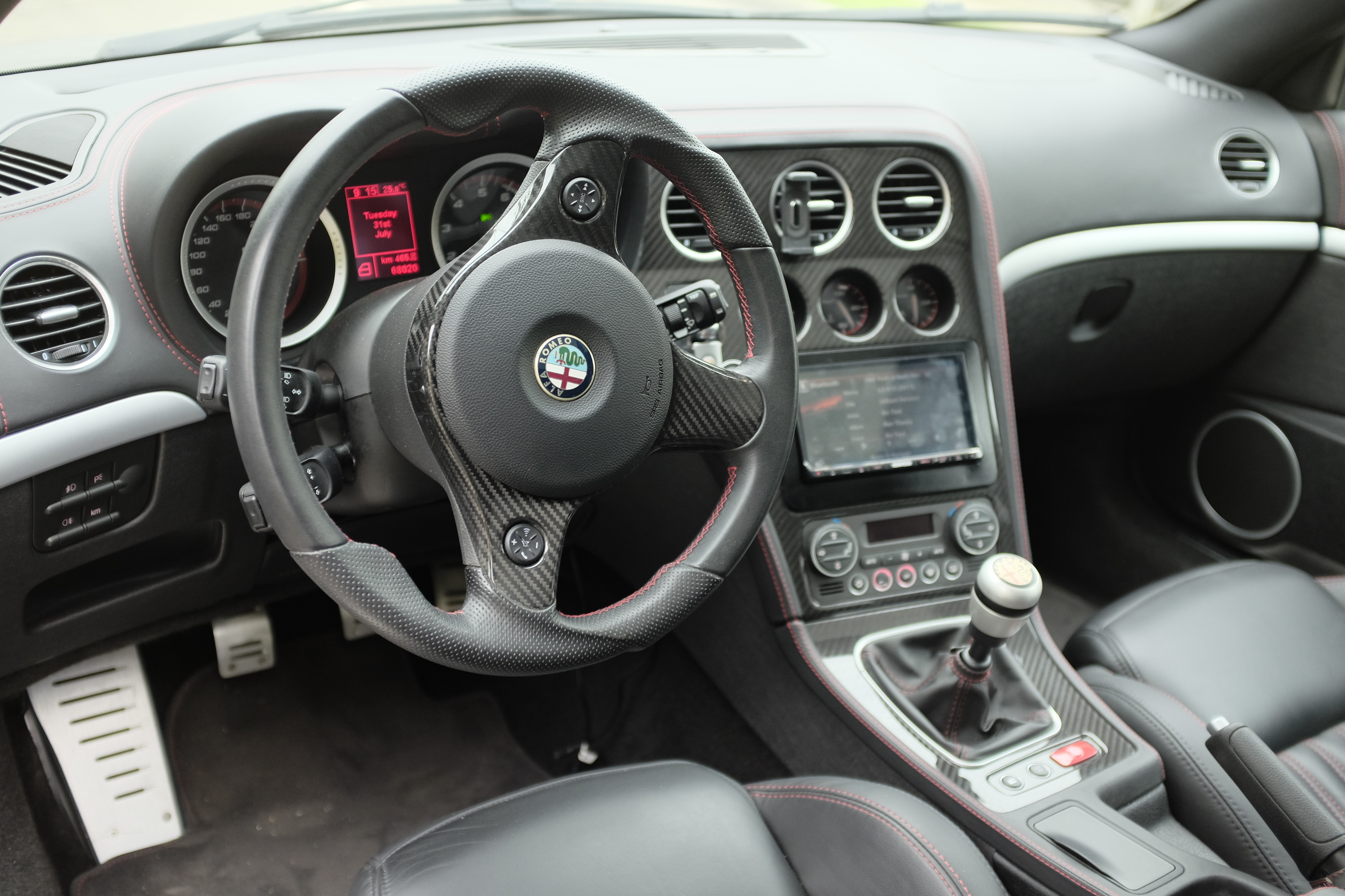 - imbracat in piele neagra cu cusaturi rosii ce ramasese diferit in dotarea Italia Independent - maner frana de mana si husa de la schimbator (http://shop.alfisti.net/Tuning-Styling/ ... :4336.html);