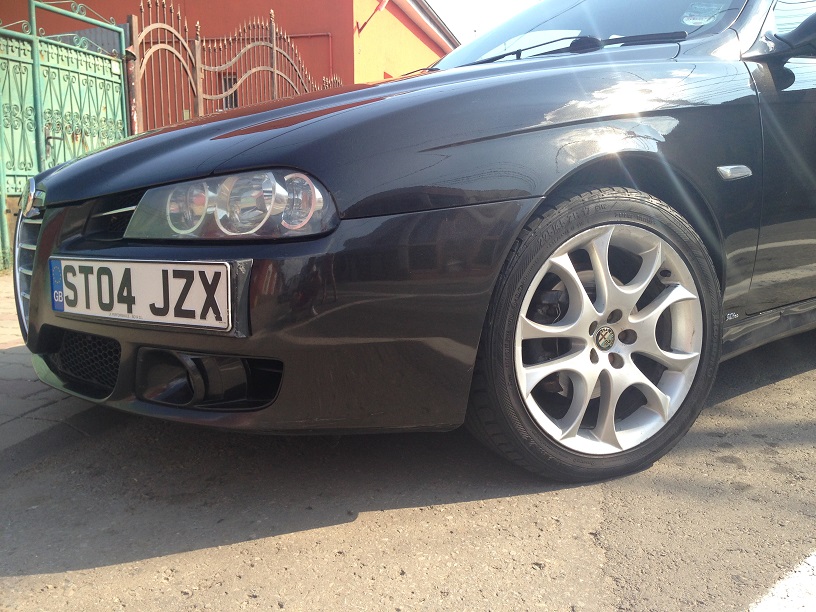 A venit vremea sa va prezint noua membra a familiei. Clar este tot '56 desi am avut ceva ganduri cu un GT. Dar, Alfa... boli mintale... nu are rost sa ma explic. Intelegeti voi. Asadar, este vorba de o bruneta(negru e negru!) din 2004, achizitionata in aprilie cu 120k mile in bord, aparent fara probleme, dar am mers sa iau o Alfa deci nu ma asteptam sa fie totul perfect. Vazut, placut, negociat(avea parbrizul crapat) si batut palma. Dupa ce am luat-o, in drumul spre casa, am descoperit ca patina in viteza 6. Clar ambreiaj. Am mers cu ea la doctor si am schimbat ambreiajul si volanta. Pe langa astea i-am facut si revizia. Ca ulei am ales Motul 8100 XCES. Vorba multa, saracia omului. Poze: